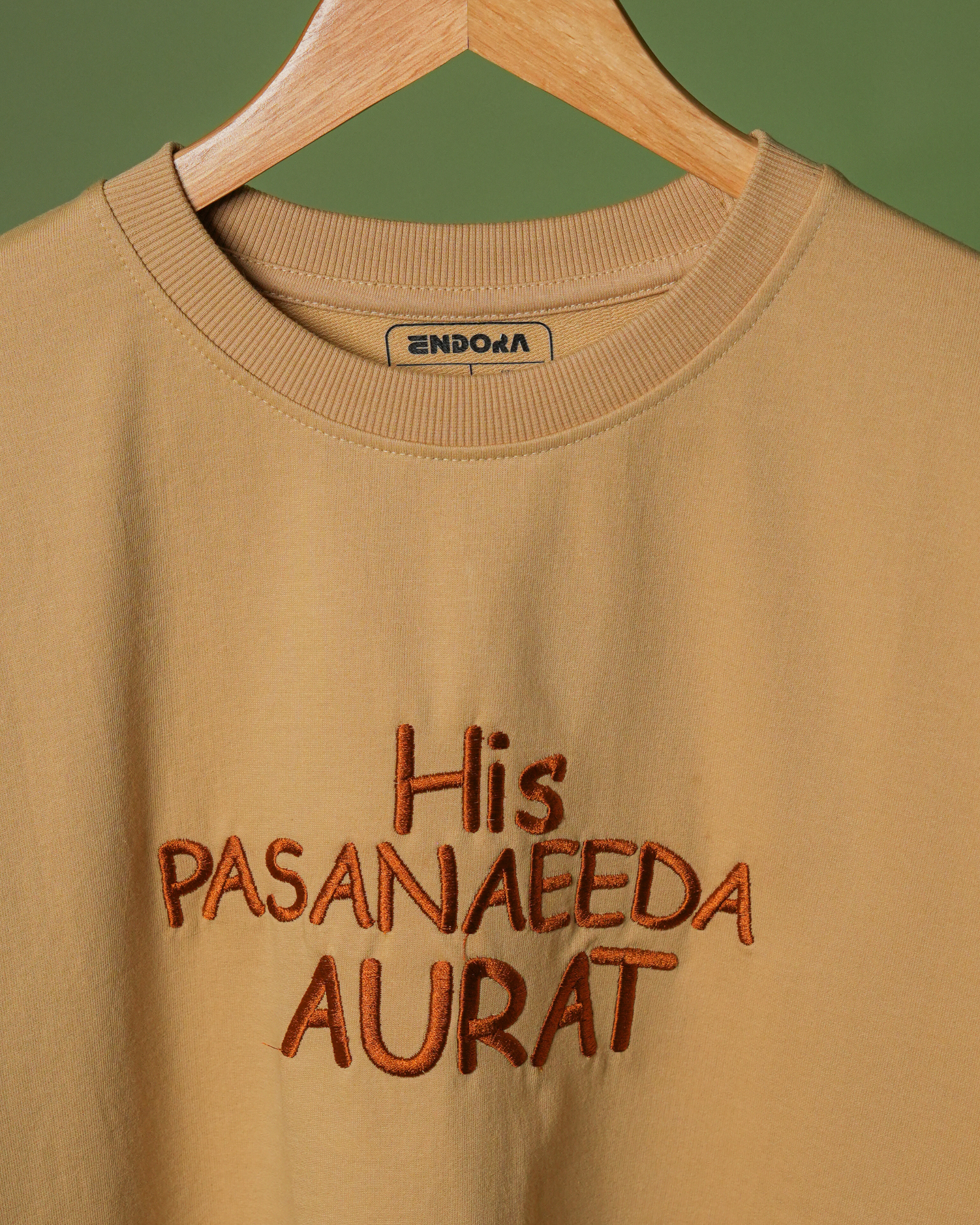For the woman who proudly wears the title—""His Pasandida Aurat"" is more than just a line, it’s a whole love story in one bold statement. Soft, strong, and stylish—just like her.